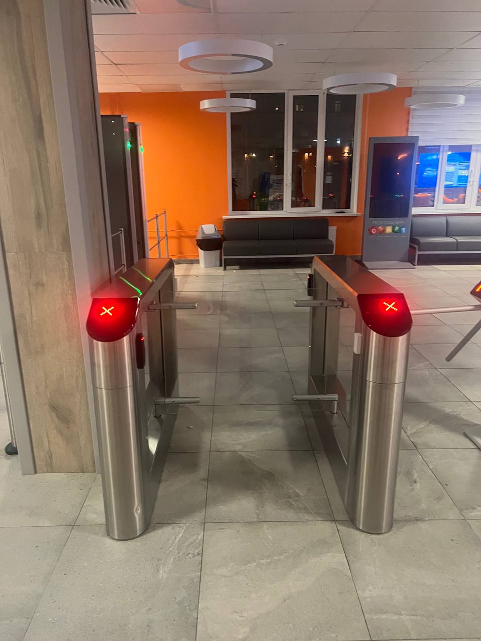 - Зона для посетителей в коридоре 1 этажа, оборудованная мягкими диванами - 4 шт, интерактивный информационный киоск -2)